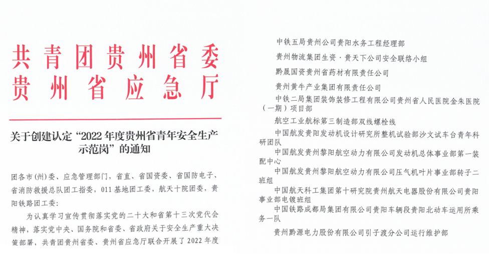 森林舞会官方网站二局装修公司贵州省人民医院金朱医院项目部荣获“2022年贵州省青年安全生产示范岗”称号